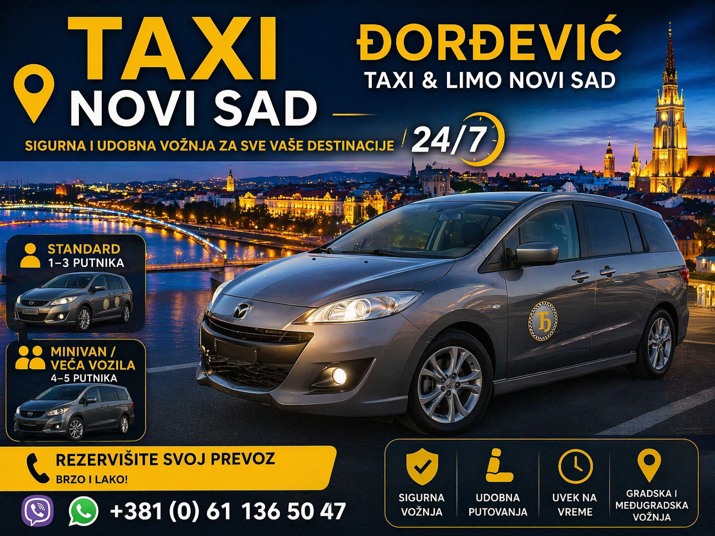 Preduzeće Đorđević Taxi & Limo Novi Sad pruža profesionalnu uslugu taxi prevoza putnika. Bilo da se krećete unutar Novog Sada ili planirate putovanje u druge gradove Srbije i regiona, garantujemo vam tačnost, čista vozila i maksimalnu pouzdanost.